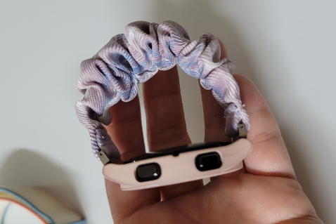 "기존 실리콘 스트랩을 사용했을 때는 오래 차고 있으면 땀이 차는 느낌이 있었는데, 스크런치 스트랩은 부드럽고 가볍게 감겨서 정말 편해요."