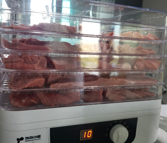 키친아트 5단 전기건조기는 단순한 과일 건조기용이 아니라, 강아지 육포, 건강 간식, 장기 보관용 식품을 만드는 용도로 다양하게 사용되고 있다.