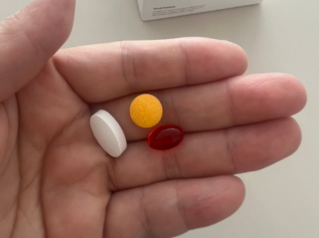 빨간 연질 캡슐(지용성 비타민), 노란 타블렛(수용성 비타민), 흰색 타블렛(미네랄)로 구성돼 있어 필요한 영양소를 균형 있게 섭취할 수 있다.