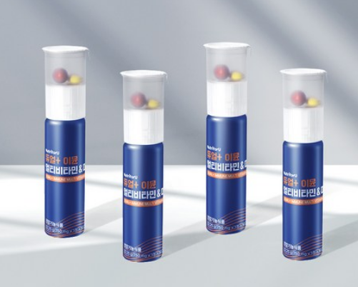 ‘뉴트리포유 듀얼 이뮨 멀티 비타민 미네랄’은 한 병에 액상, 정제, 캡슐이 함께 구성된 올인원 제품이다.