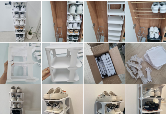 기존의 신발 거치대는 대부분 2~3단 구조로, 가벼운 신발 몇 켤레만 수납할 수 있는 경우가 많습니다. 하지만 9단 신발정리대는 이름 그대로 9켤레 이상 정리 가능한 세로형 구조로, 수납은 물론 공간 활용까지 가능하다는 점이 가장 큰 차이입니다.