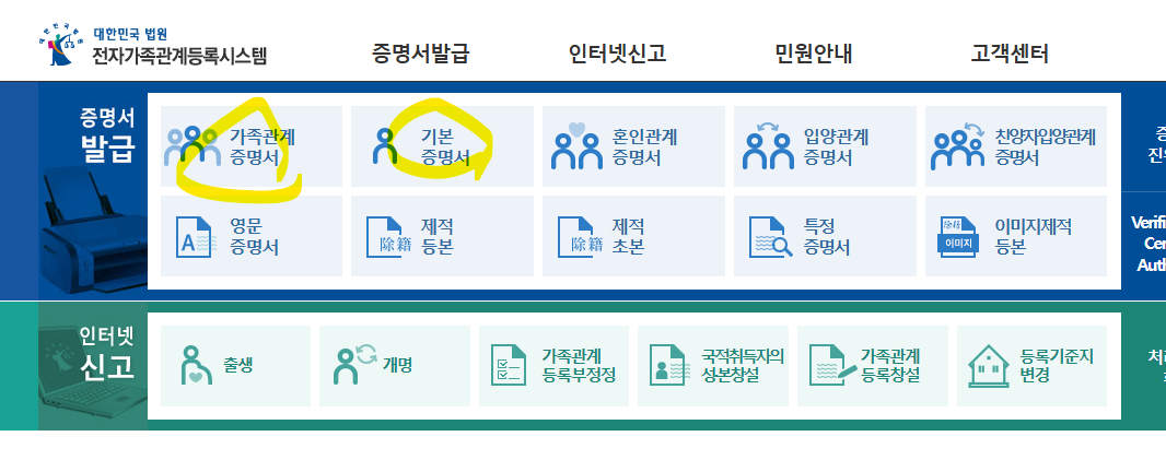 대법원 전자 가족관계 등록 시스템으로 이동한다.