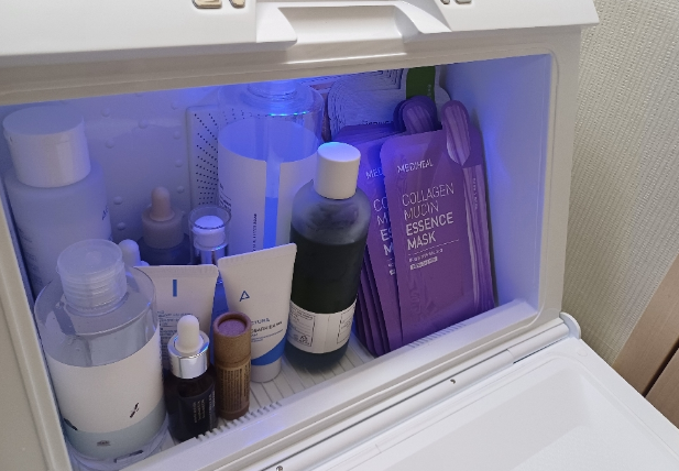 냉장실처럼 수납을 정리하는 맛이 있어서, 화장품을 종류별로 나누어 넣기에도 좋았습니다.