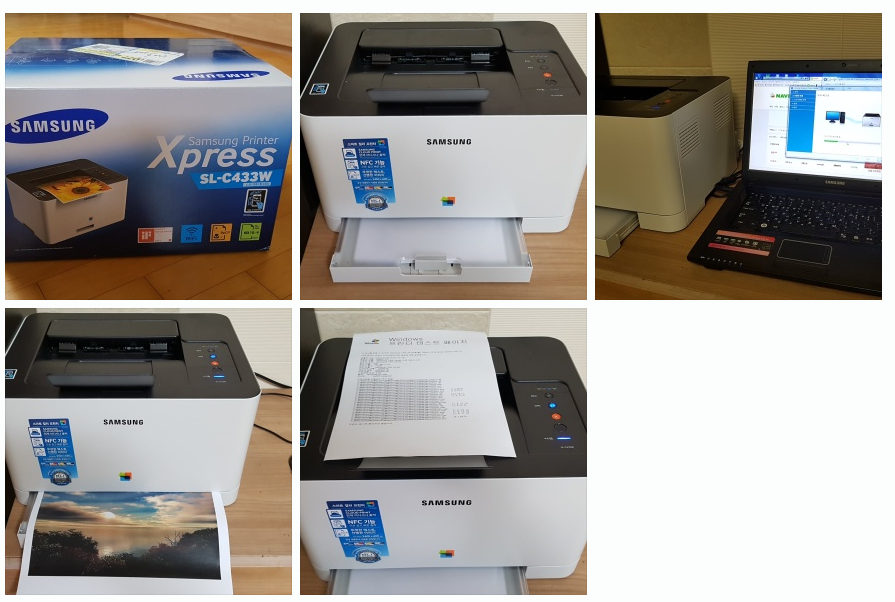 SL-C433W 이 모델은 와이파이 연결이 되는게 장점입니다. 요즘은 PC를 무선으로 연결해서 쓰는 경우도 많다보니 와이파이 연결이나 휴대폰에서 직접 인쇄하는 기능이 필수적입니다.