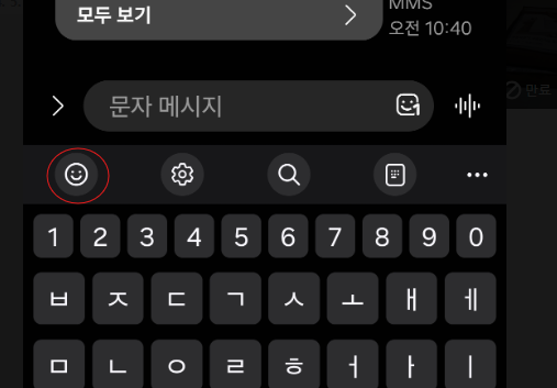 그러면 키보드 상단에 설정화면이 나타나서 바로바로 이모지를 접근해서 쓸수 있다. 하지만 이 툴바가 생각보다 화면을 많이 가리기 때문에 사용하기 싫어하는 사람들도 있는데 이때에도 이모지를 쉽게 쓸수 있는 방법이 있다.