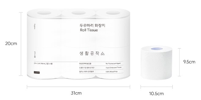 생활공작소 천연펄프 3겹 두루마리 화장지, 27m, 6개입, 1개 - 화장지/티슈 | 쿠팡