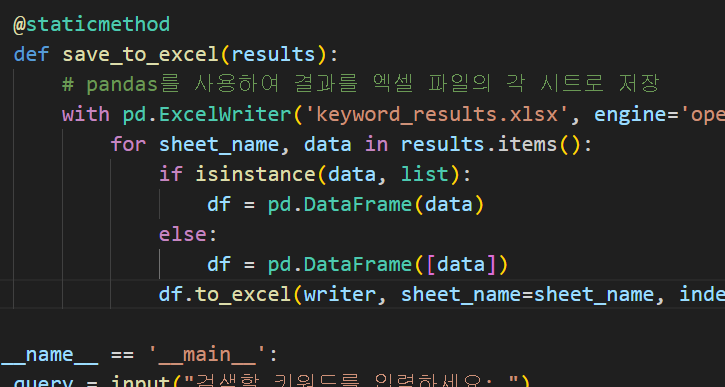 방금은 네이버 검색광고 api 를 이용해서 키워드 검색기를 파이썬으로 만들었다. php 로 이미 만든 프로그램이지만 웹으로는 사람들이 쓰기 편하게 만들어야하는 거고, 내가 쓰는데는 파이썬으로 슉슉 엑셀 저장하게 만드는게 더 편하다.