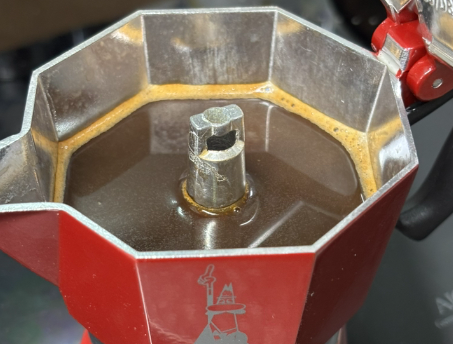 가열이 되면서 물이 끓고, 생성된 증기압이 물을 위로 밀어 올려 커피층을 통과합니다. 이 과정에서 진한 커피가 상부 챔버에 모이게 돼요. 압력은 약 1.5~2바로, 에스프레소 머신(9바)보다 낮지만, 일반적인 드립 커피보다 진한 맛을 낼 수 있어요.