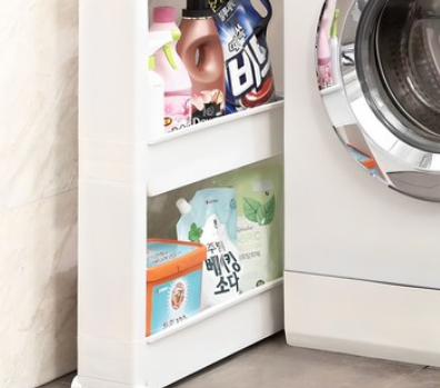 주방에서는 양념통, 조리도구, 식기 등을 정리하는 데 활용할 수 있다. 가전제품 사이 빈 공간이나 싱크대 아래 틈을 이용하면 자주 쓰는 물건을 쉽게 꺼낼 수 있다. 이동식 서랍장을 사용하면 필요할 때 자리를 바꿔 가며 쓸 수도 있다.